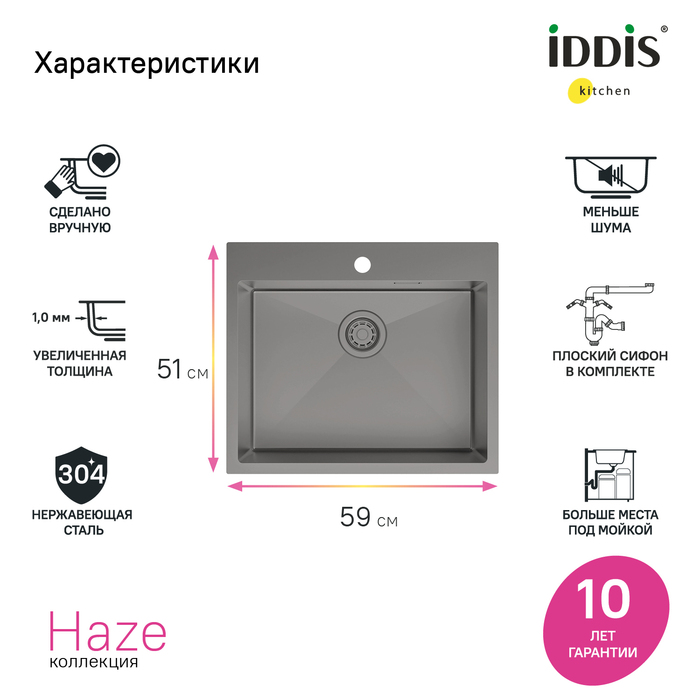 Мойка IDDIS Haze HAZ59GMi77