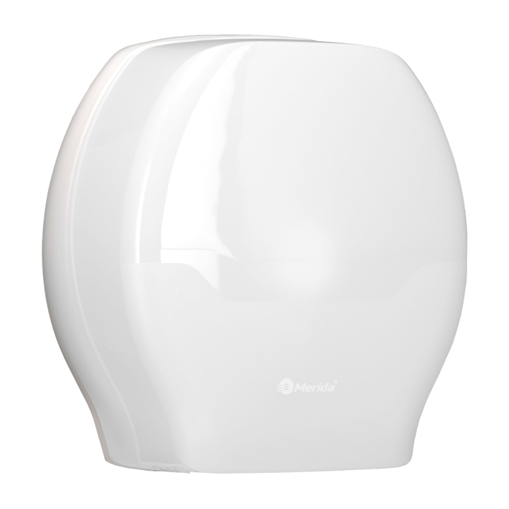 Диспенсер для туалетной бумаги в рулонах линии оборудования Merida Harmony Maxi изготовлен из ударопрочного ABS-пластика. Имеет полупрозрачную крышку, благодаря которой легко контролировать наличие туалетной бумаги внутри.