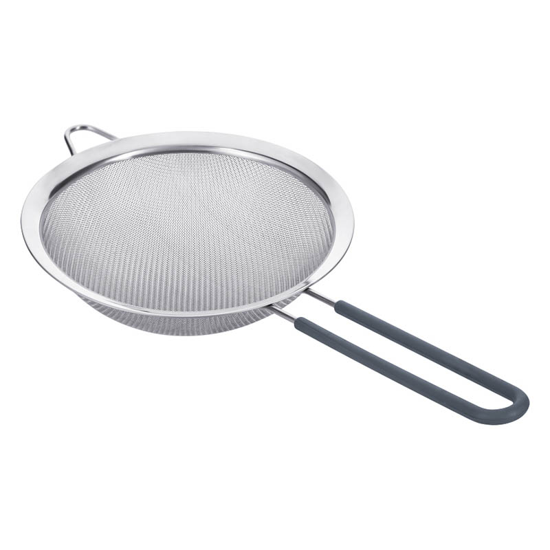 Ручка сита покрыта силиконом, который приятен на ощупь и не позволяет ситу выскальзывать из руки во время использования. Подходит для посудомоечной машины.