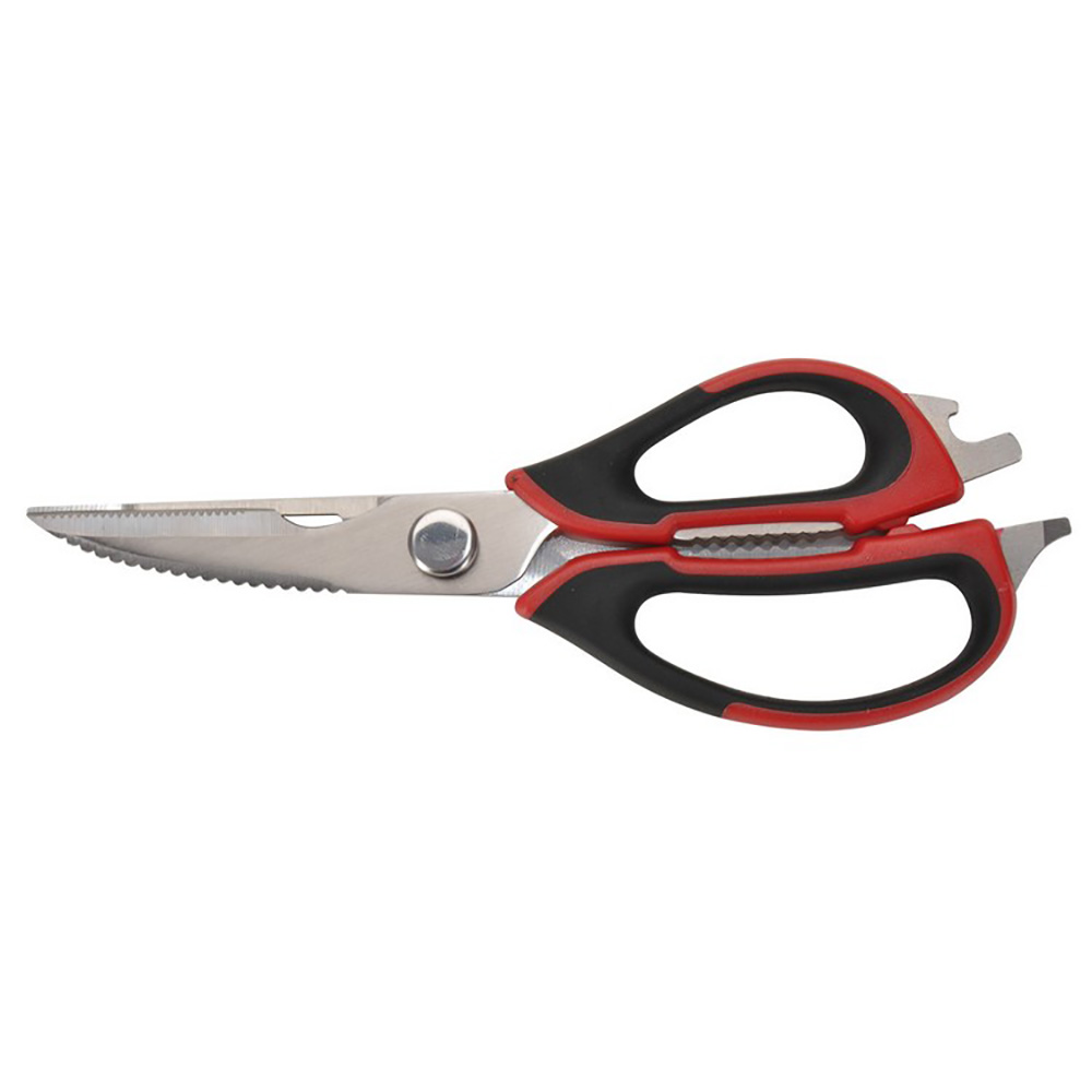 Многофункциональные кухонные ножницы — это не просто один инструмент, а целых восемь устройств в одном предмете, которые всегда необходимы во время приготовления еды. Лезвия ножниц выполнены из высококачественной нержавеющей стали, а ручки — из прочного пластика с элементами soft-touch, предотвращающими скольжение.