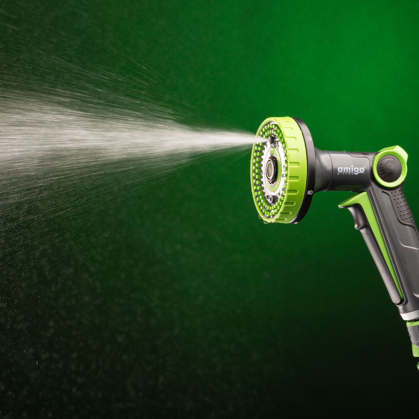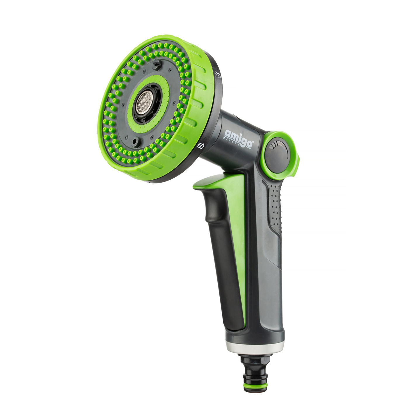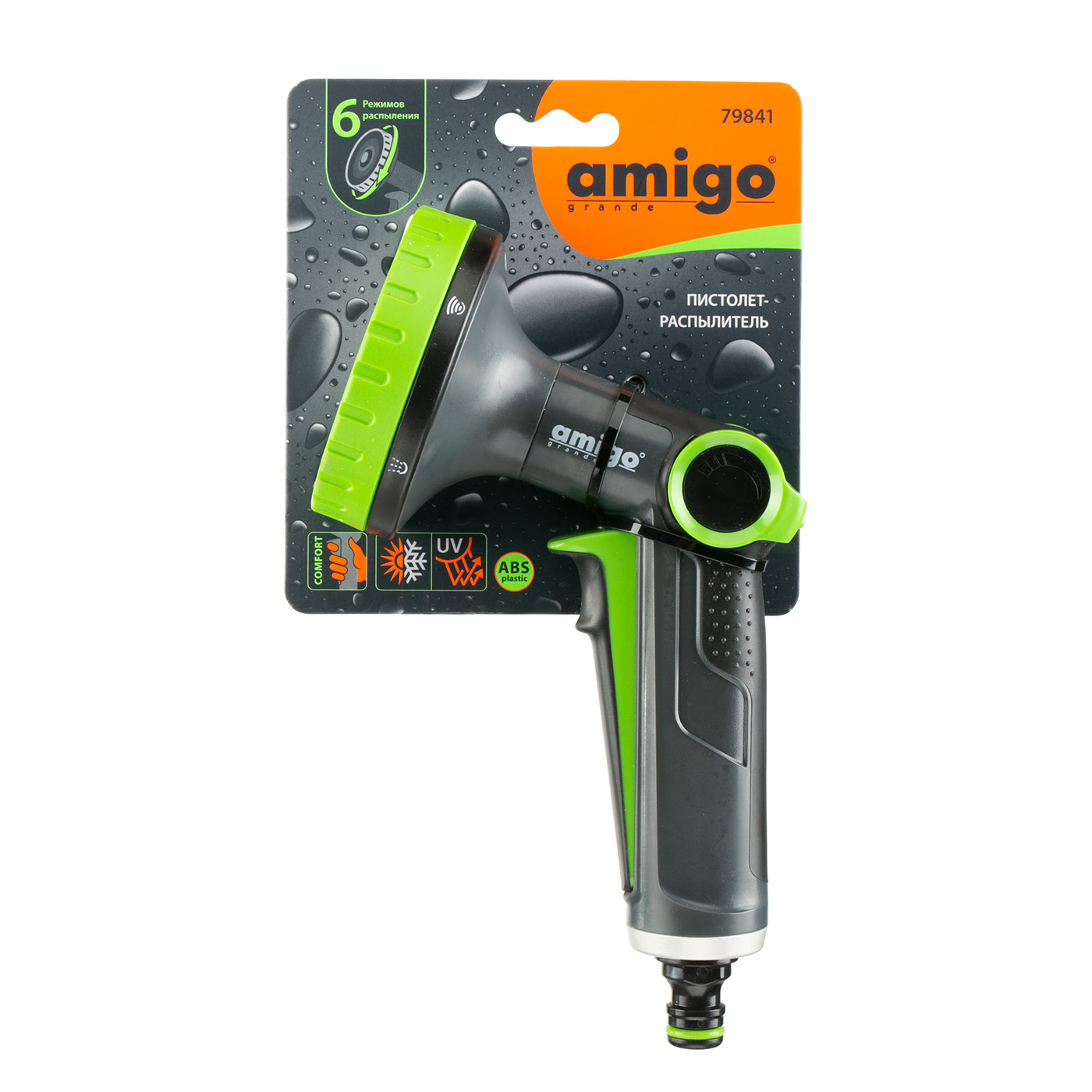 Пистолет-распылитель AMIGO 79841 применяется для полива растений на садовом участке. Пистолет оснащен четкой маркировкой для быстрого выбора типа струи, а эргономичная рукоятка обеспечивает крепкий хват без скольжения руки. Для создания современной системы полива предусмотрены мгновенное подключение, герметичное соединение и вариативность конфигурации.