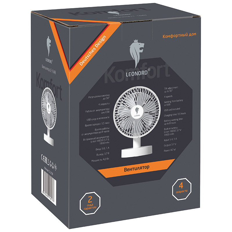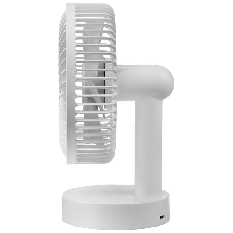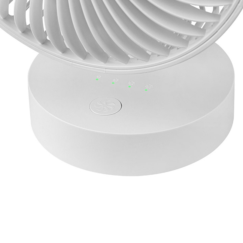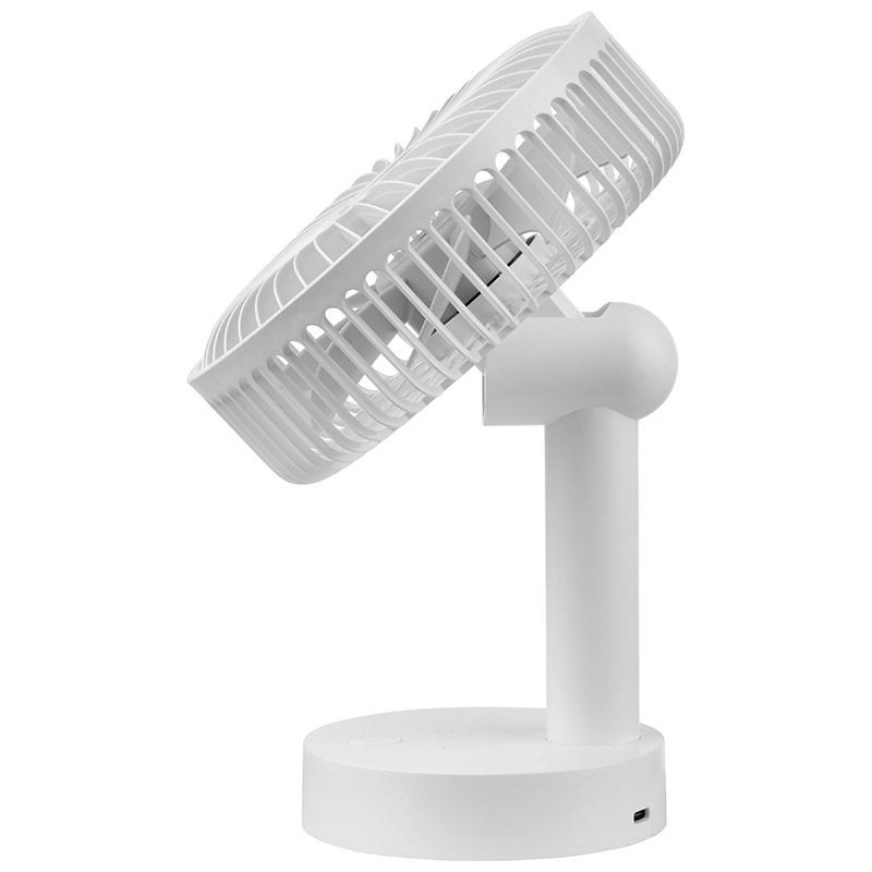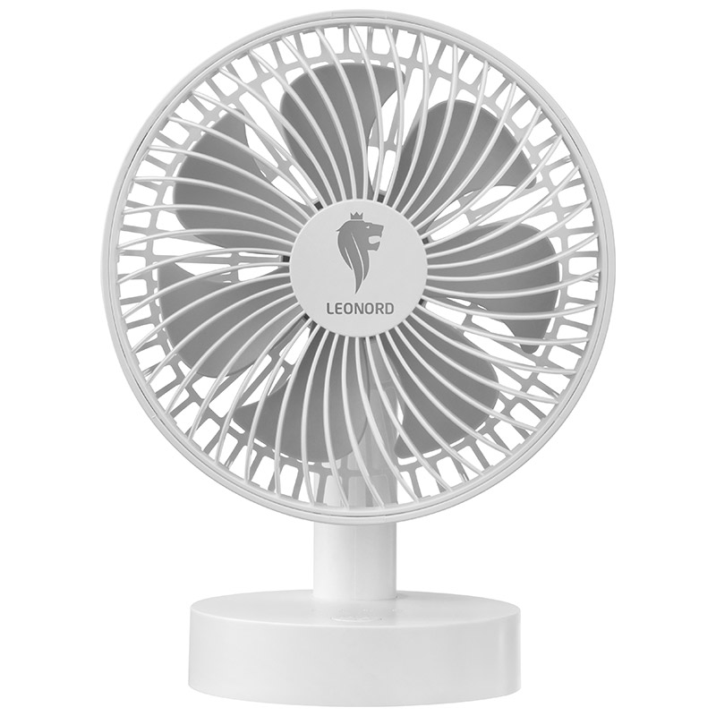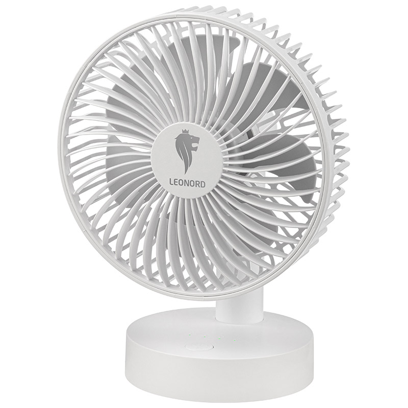 Вентилятор поддерживает четыре скорости, позволяя выбрать оптимальный режим: от лёгкого бриза до интенсивного охлаждения. Время полной зарядки составляет 3,5 часа, при этом на одном заряде вентилятор способен работать до 8 часов (в зависимости от выбранной скорости). Удобная регулировка угла наклона позволяет направлять поток воздуха точно на себя. Прорезиненные ножки предотвращают скольжение по столу, а встроенный световой индикатор всегда подскажет текущую скорость работы и уровень заряда аккумулятора.