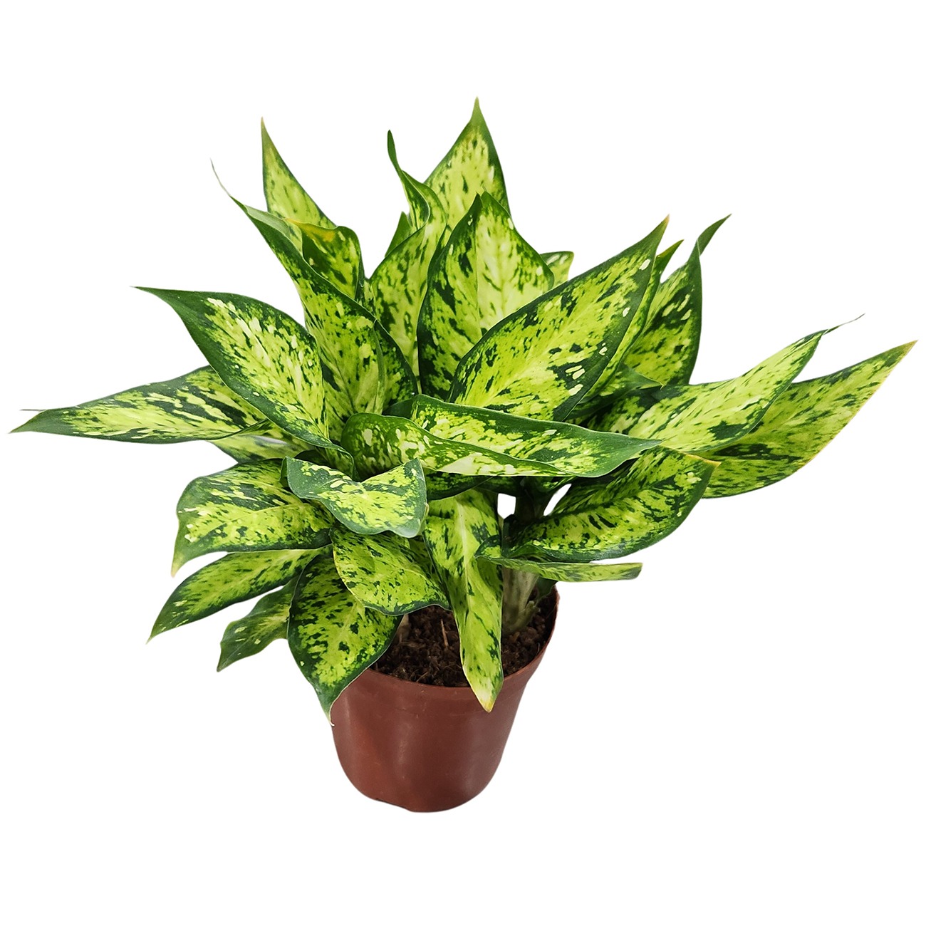 Диффенбахия Брайт Стар — эффектный вечнозеленый многолетник с самой яркой окраской среди пестролистных диффенбахий. Кремово-белый центр листа контрастирует с темно-зелеными краями и редкими вкраплениями того же оттенка. Растение быстро растет (до 40–60 см в горшке), подходит для просторных светлых помещений, офисов и зимних садов.