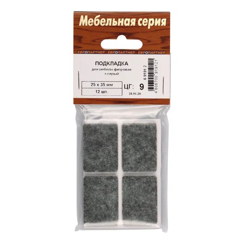Подкладка фетровая ЕВРОПАРТНЕР темно-серая 25х35мм