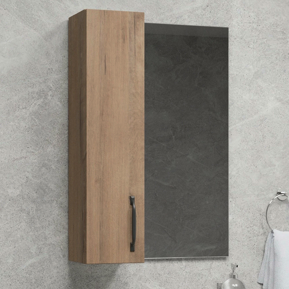 Шкаф для ванной с зеркалом коллекции Bunratty от бренда Leman – привлекательный вариант для ванной комнаты. Размер (ШхВхГ) - 500х700х180 мм. Корпус и фасад выполнены из ЛДСП в цвете Дуб бунратти. Дверцы оснащены доводчиками.