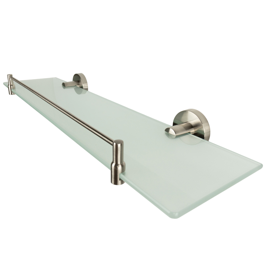 Полка выполнена из матового стекла, которое не только придает изделию аккуратный, полупрозрачный внешний вид, но и делает водные разводы и мыльные следы менее заметными по сравнению с прозрачным.