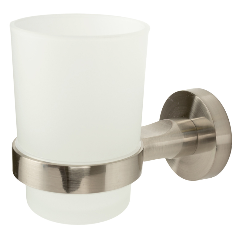 Подвесной стакан для ванной комнаты — удобный в использовании аксессуар для размещения различных гигиенических принадлежностей: зубных щеток, станков для бритья, кремов и т. д. Изделие включает в себя держатель и закрепленный в нем съёмный стакан из матового стекла. Держатель изготовлен из металла и монтируется к стене при помощи надежного крепления.