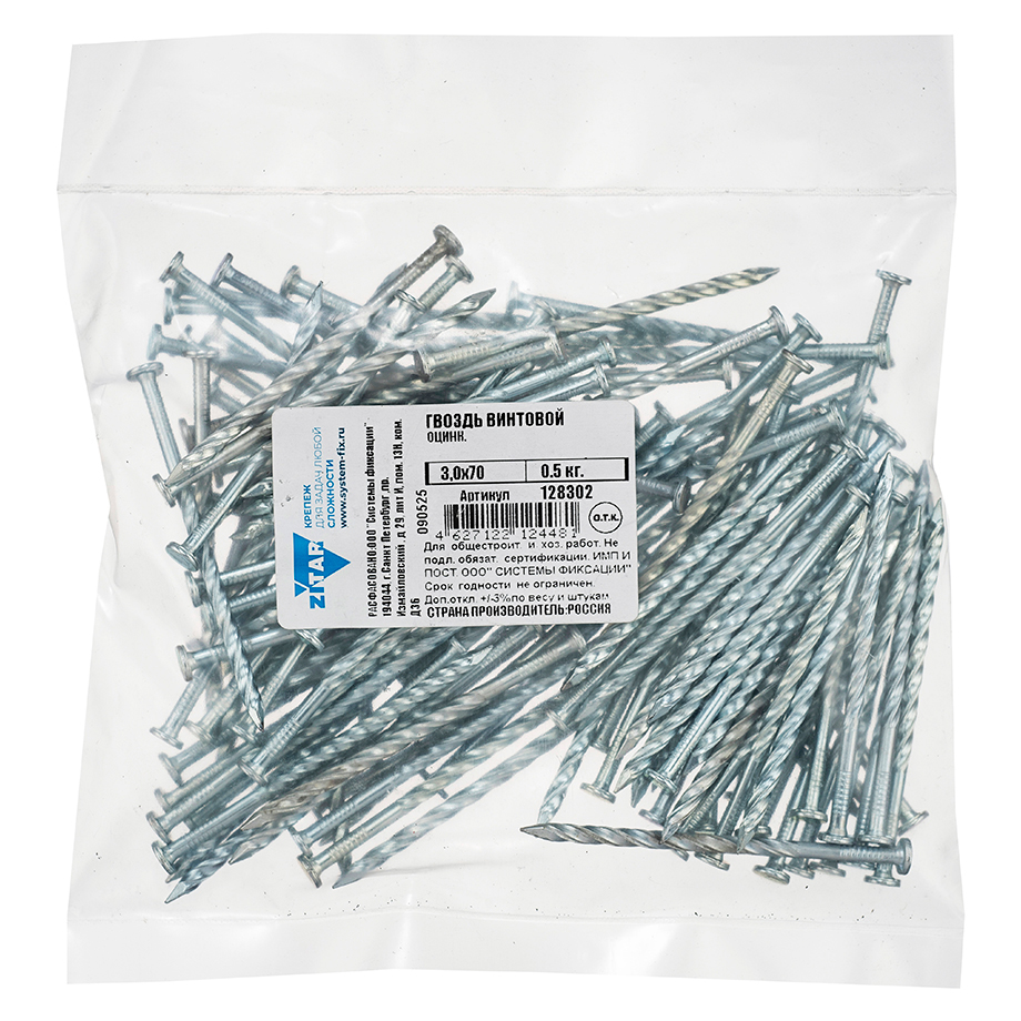 Гвозди винтовые ZITAR 3х70 оцинкованные 500г