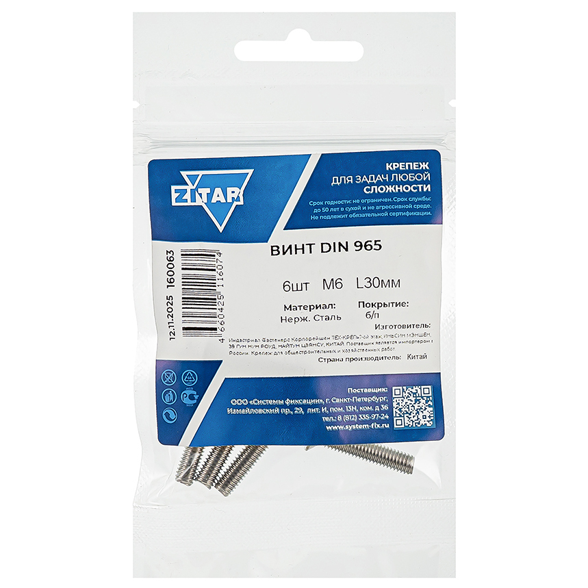 Винт ZITAR DIN 965 6x30 6шт