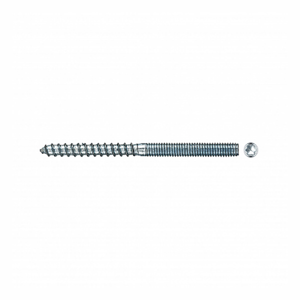 Изготовлено углеродистая сталь с антикоррозионным цинковым покрытием. Материал применения: дерево, бетон, кирпич, природный камень. Имеют два вида резьбы: с одной стороны шурупную резьбу с острым наконечником, с другой стороны — метрическую резьбу со шлицем TORX T20.