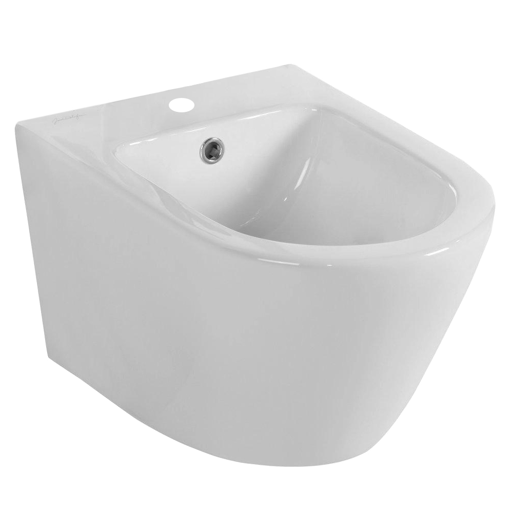 Обтекаемая форма позволяет с легкостью произвести очистку поверхности. Горизонтальный выпуск (в стену). В комплектацию входит слив-перелив. Донный клапан приобретается отдельно. Диаметр слива – 4,5 см. Для установки подвесного биде потребуется система инсталляции. Конструкция биде имеет специальную полость, которая служит встроенным сливом-переливом на случай переполнения чаши.