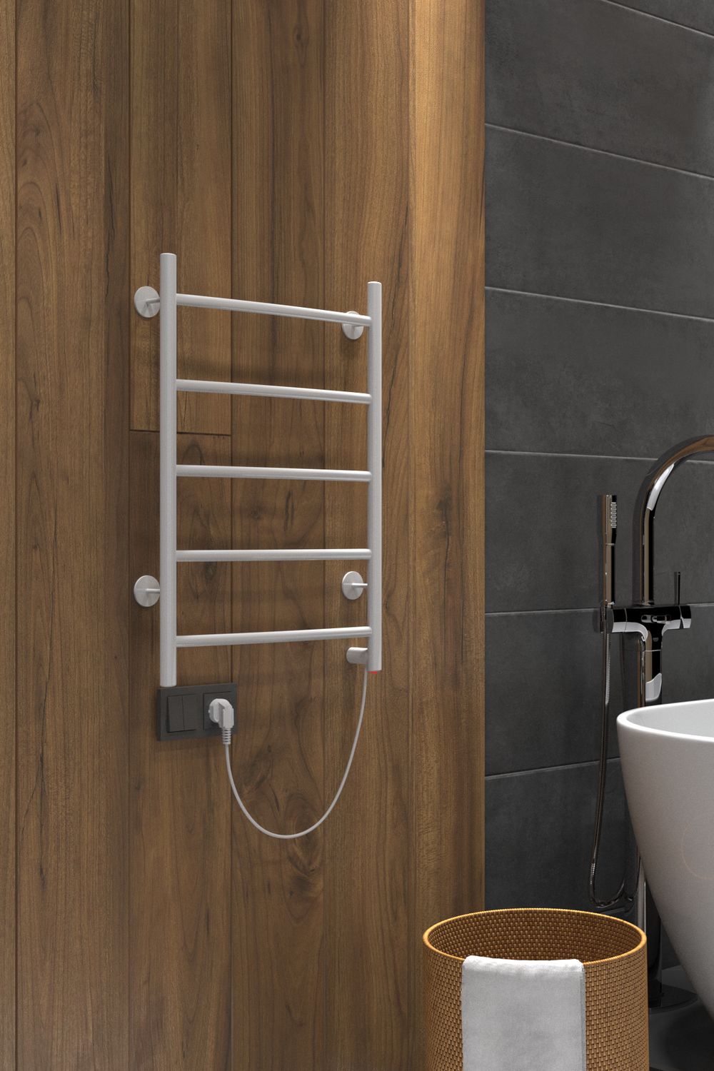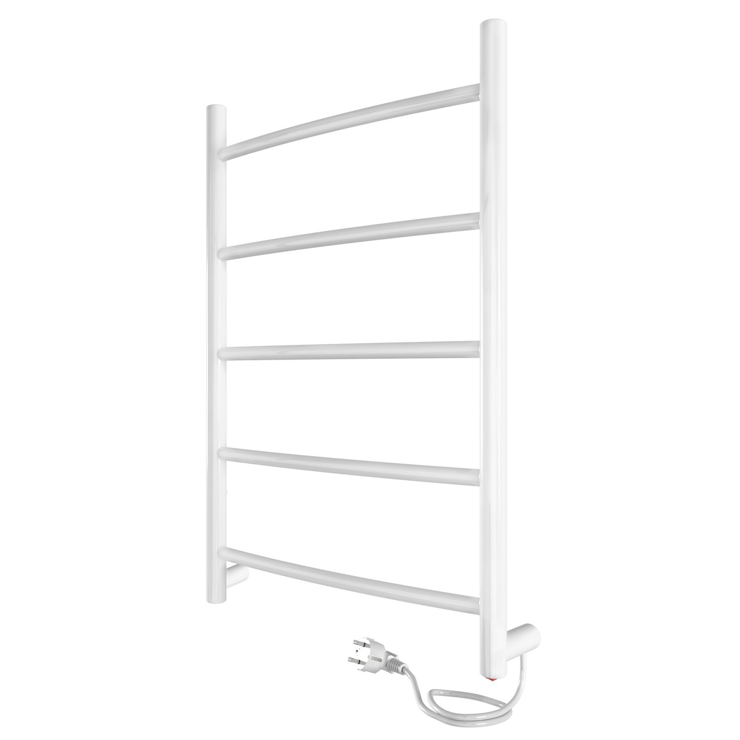 Электрический дугообразный полотенцесушитель выбирают за его классический вид лесенки и универсальность. Модель оснащена кнопкой включения на нижней части стойки. Универсальность изделия предусматривает подключение через прямой провод, который переставляется на нужную вам сторону или скрытое подключение без покупки дополнительного переходника.