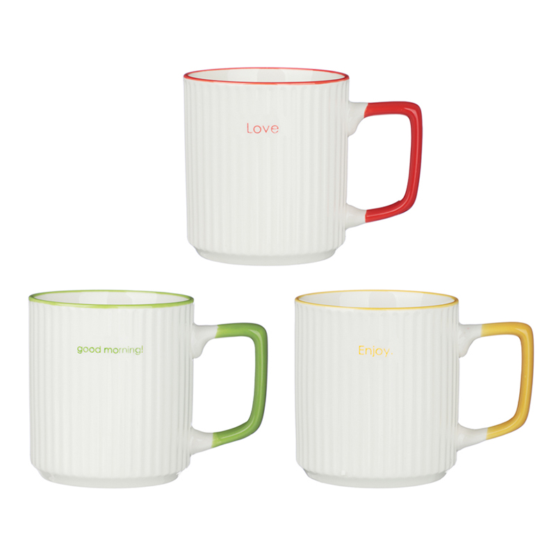 Фарфоровая кружка подходит для чая и кофейных напитков. Широкое основание исключает случайное опрокидывание, а ручка комфортно ложится в руку. Не требует специального ухода, легко моется вручную или в ПММ. 3 цвета в ассортименте.