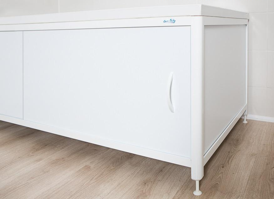 Угловой экран под ванну – это не совсем стандартное оборудование. Его предназначение необходимо, если ванна в вашем доме отличается нестандартной конструкцией, то есть одна из её торцевых сторон не прилегает к стене. В таком случае для декорирования пространства под чашей понадобится угловой экран под ванну. Угловые экраны для ванн в большинстве случаев имеют очень простую и удобную в установке конструкцию, которая состоит из направляющих и панелей. Открываются они либо как двери шкафа-купе, либо просто открываются наружу. В том случае, если створки вашего экрана для ванн будут открываться наружу, то стоит предусмотреть этот факт, чтобы предметы и сантехника в ванной комнате не мешала нормальному и свободному их открыванию. Значительное удобство во время установки обеспечивается тем, что угловые экраны для ванн могут легко изменять свою высоту, и тем самым, подстроиться именно под ваши индивидуальные размеры.