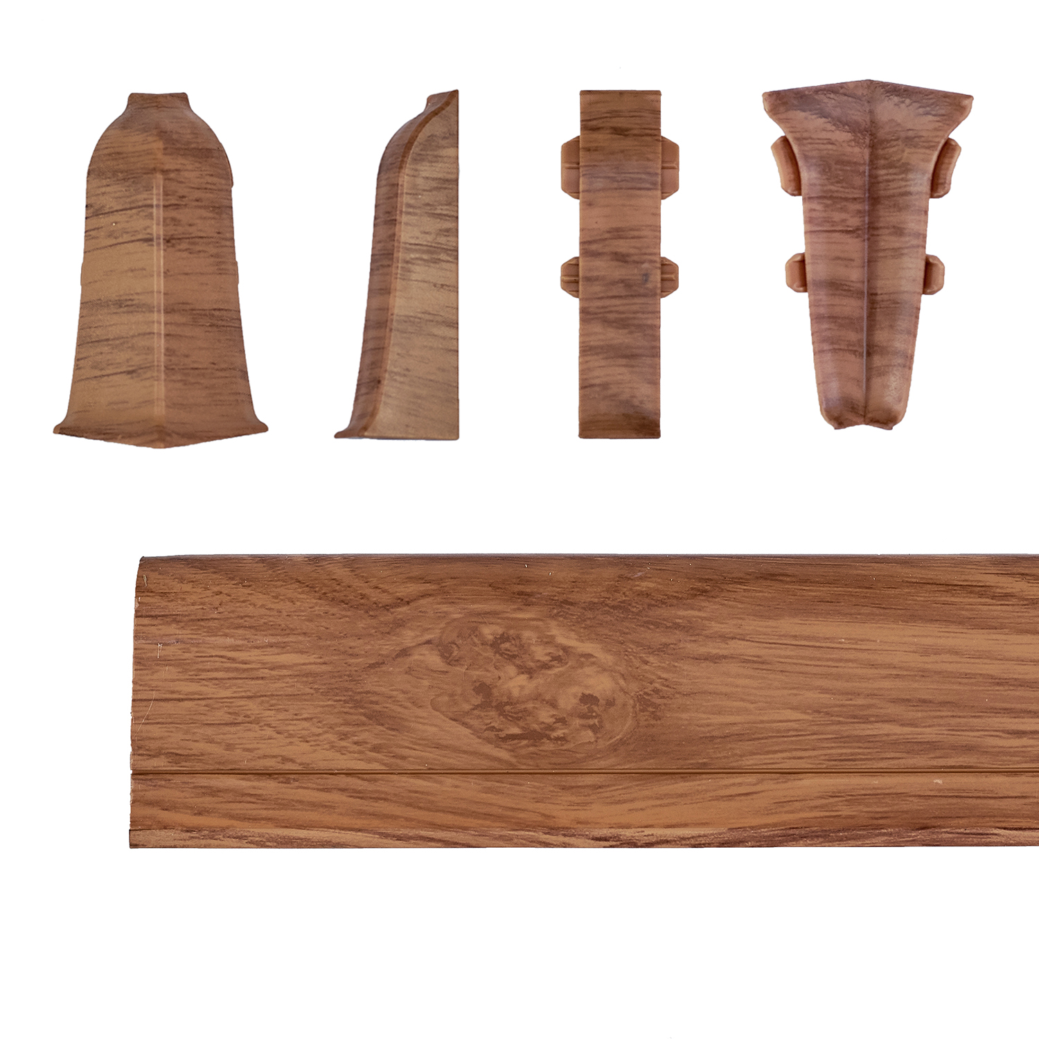 Фурнитура, используемая при установке плинтуса, упрощает установку, делает ее завершенной, в точности повторяет профиль плинтуса в поперечном сечении, что дает плотное прилегание элементов, не оставляя зазоров между плинтусом и элементом.