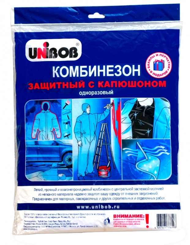 Одноразовый комбинезон белого цвета, предназначен для защиты одежды при проведении малярных, лакокрасочных и других отделочных и строительных работ. Комбинезон изготовлен из 100% полипропилена. Комбинезон защищает одежду от внешних загрязнений, удобен в эксплуатации, не промокает при попадании капель краски и жидкости.