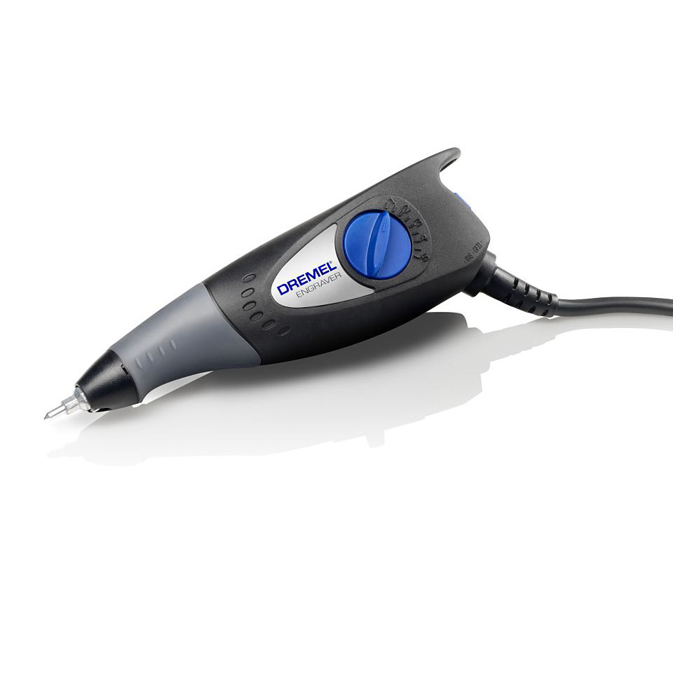 Гравировальный инструмент с регулируемой глубиной обработки, используется для выполнения гравировки на различных материалах, например металле, стекле, древесине, пластмассах, керамике. Также этот комплект включает в себя шаблоны букв и цифр – для облегчения их гравировки. Для удобства в работе, данная модель оснащена прорезиненной рукояткой. Глубина гравирования регулируется поворотным переключателем на корпусе инструмента.