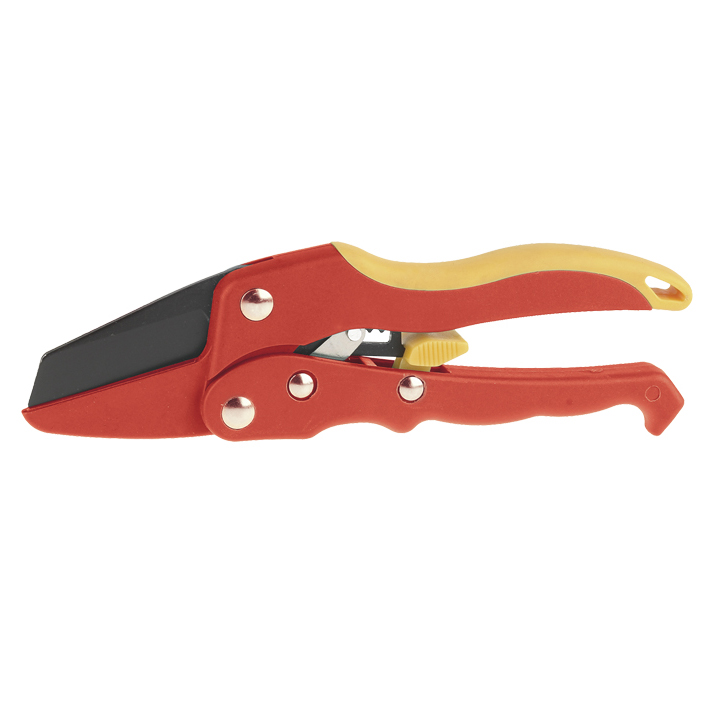 Нейлоновые ручки, армированные стекловолокном, придают инструменту лёгкость, сохраняя при этом его прочность. Храповой механизм многократно увеличивает силу реза, что необходимо при обрезке крупных веток. Покрытие ручек термопластичной резиной «TPR» обеспечивает удобный захват инструмента и снижает утомляемость при выполнении садовых работ. Максимальный диаметр реза – 15 мм.