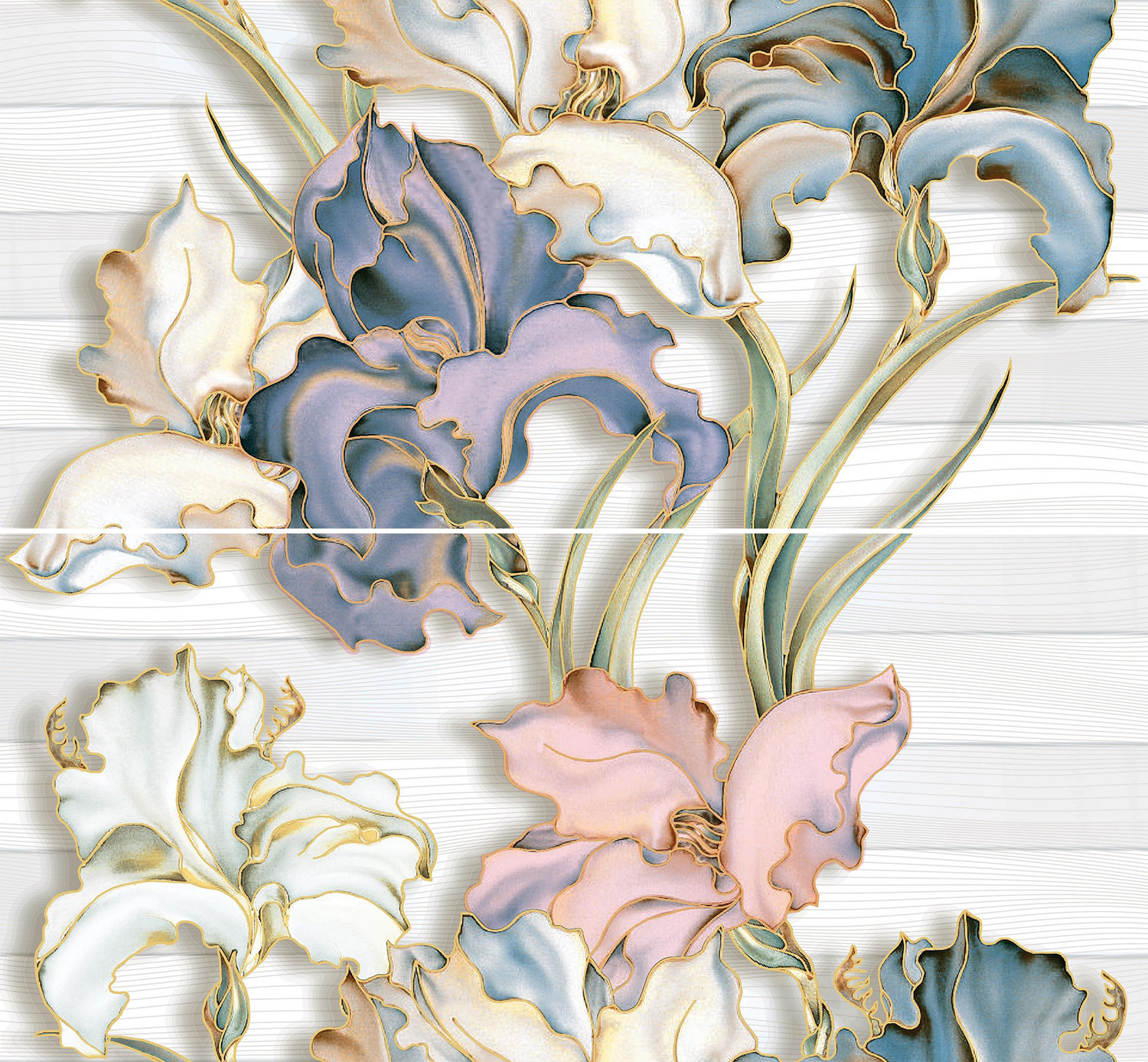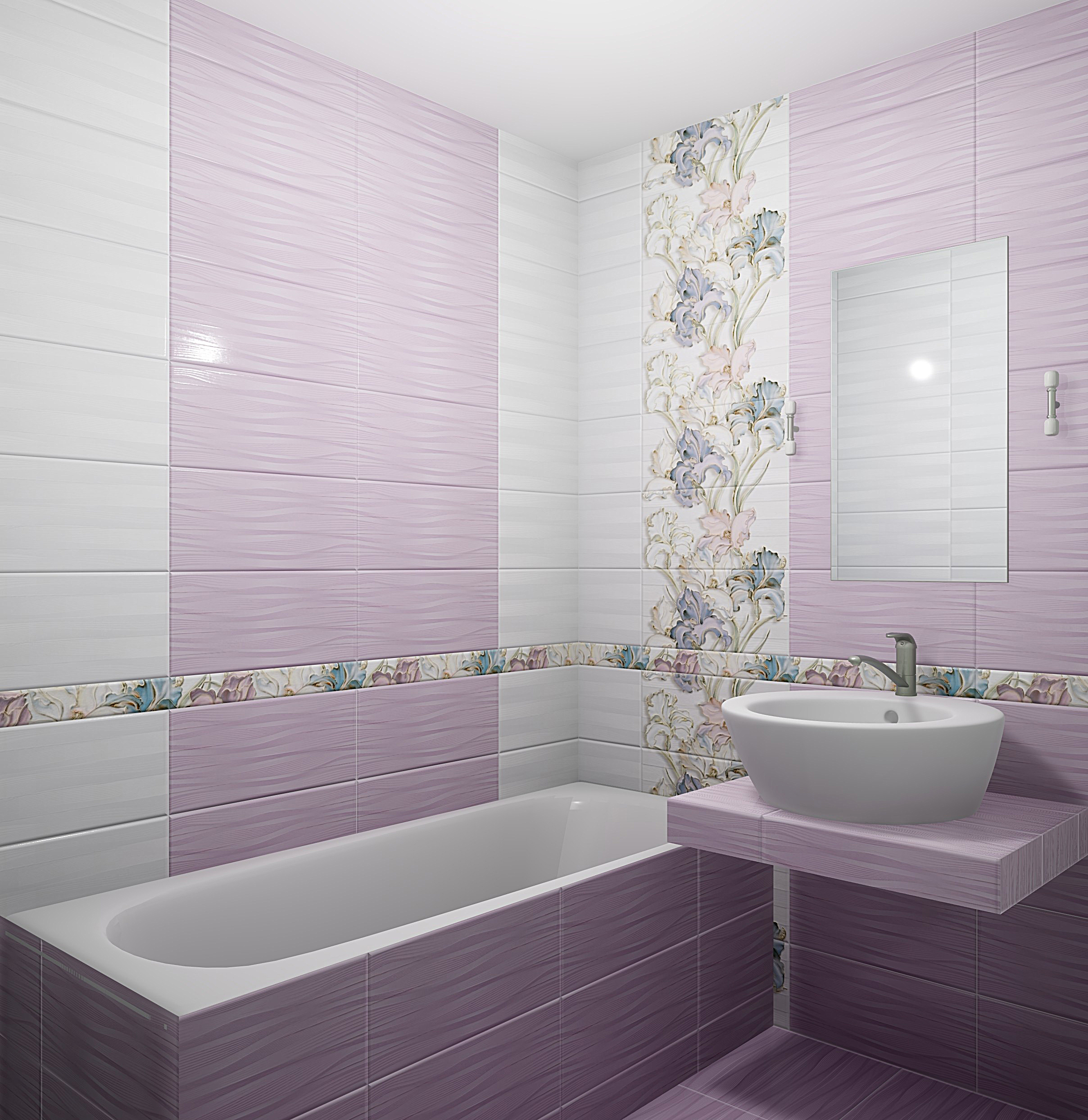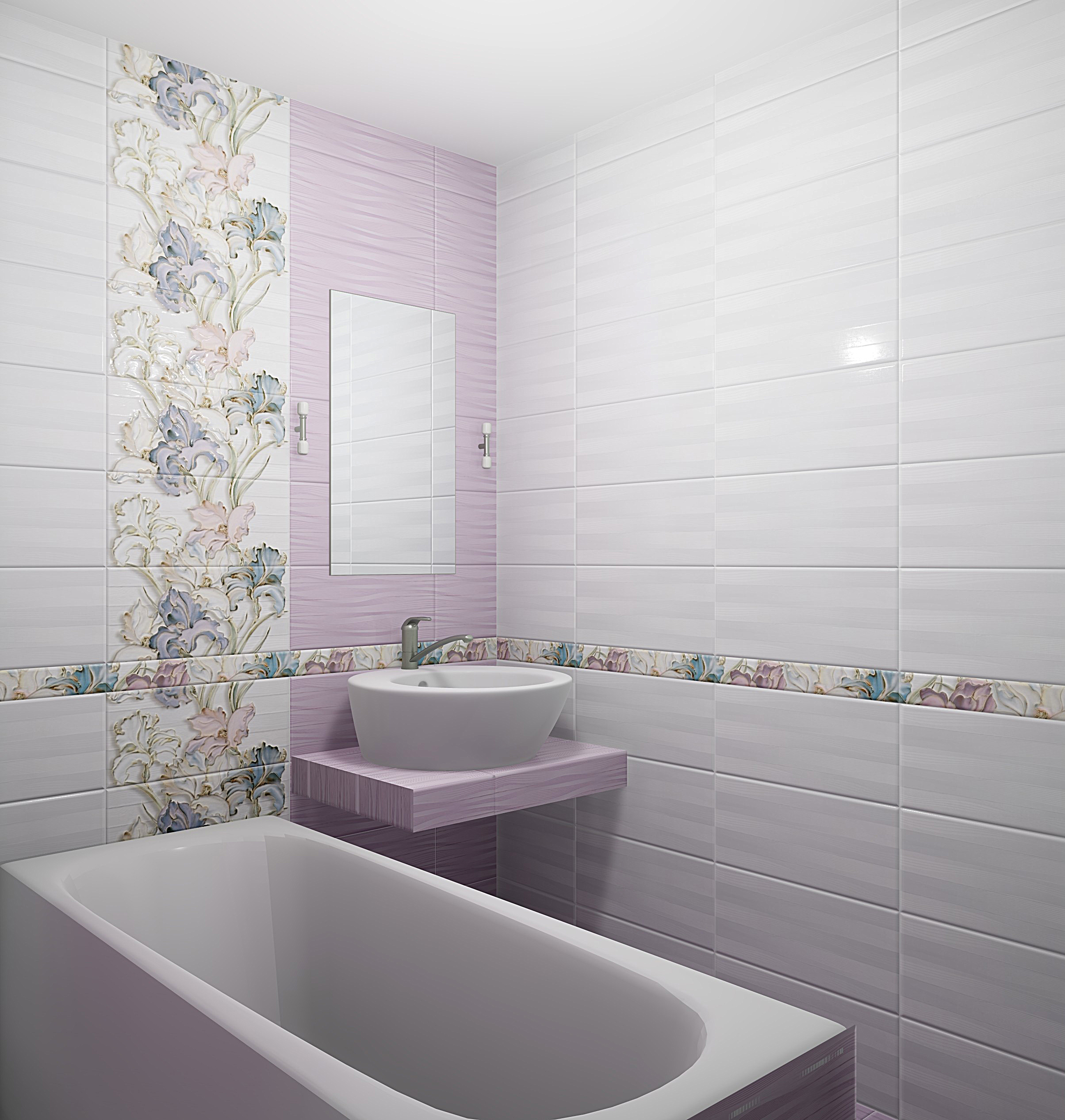 Керамическая плитка Batik — это изящная и светлая коллекция, созданная итальянскими дизайнерами. Коллекция состоит из двух видов светлого лилового и серого цветов и стильного декора с цветочным принтом. Нежные ирисы, филигранно выполненные в мягких оттенках, смотрятся особенно изящно в обрамлении простого орнамента из переплетения линий.