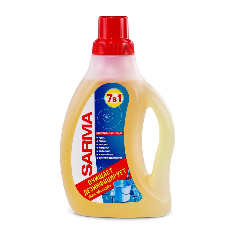 Средство Sarma 7в1 предназначено для мытья и дезинфекции всех видов полов — плитки, ламината, деревянных, окрашенных, а также других моющихся поверхностей. Не раздражает кожу рук. Средство обладает дезинфицирующим эффектом, удаляет 100% микробов и загрязнений.