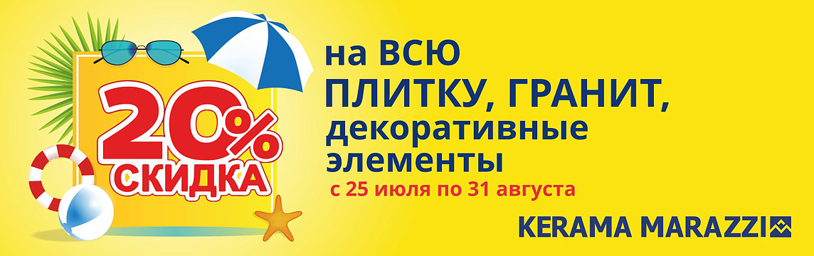 ГлавнаяАкции — 20% скидки на всю плитку, гранит, декоративные элементы KERAMA MARAZZI