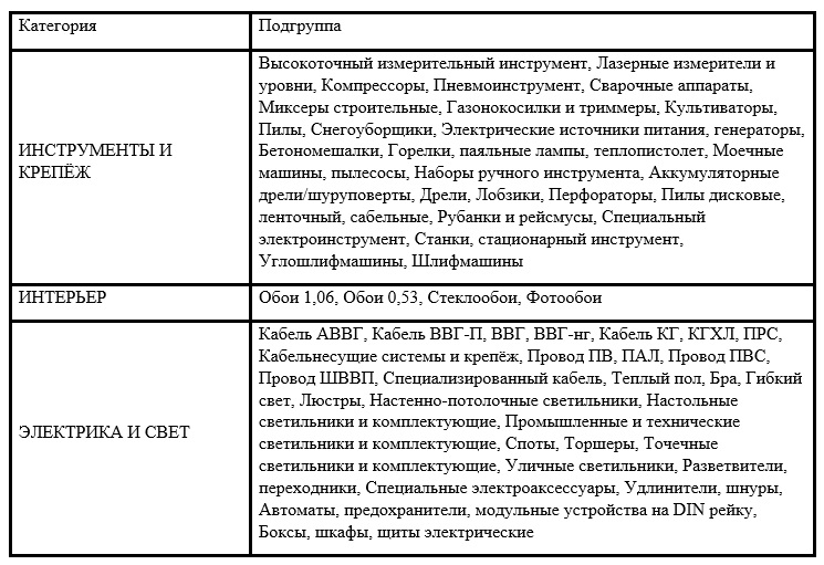 Товар находится в наличии в розничной сети ТК «Стройпарк» и у конкурента на момент обращения;